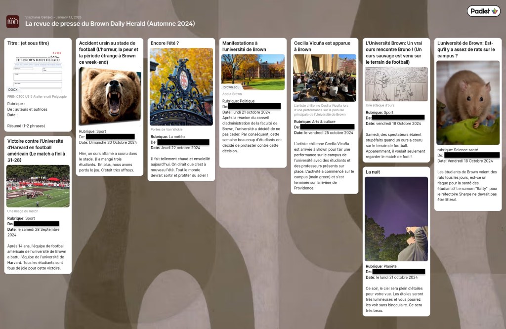 Padlet for the creation of a Francophone newsletter